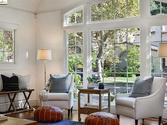 Light-filled Mediterranean offering easy all-level living with contemporary features and architectural elements on a lush parcel. Beautiful mature landscaping, oversized back terrace and yard offer ideal indoor/outdoor living. A unique home with perfect scale, oversize windows throughout, master bedroom suite, and two generous sized bedrooms sharing a recently remodeled bath. Dramatic living room/dining room adjacent to lovely kitchen with built-in breakfast nook. A modern, highly functional home in beautiful Crocker Highlands.