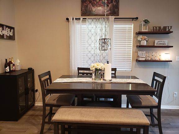 Gorgeous 4 bedroom 2 bath home on large lot featuring large covered patio, kitchen has granite counter tops, new laminate flooring, newer carpet in bedrooms, granite counter tops in bathrooms, and recessed lights in kitchen, open concept, 9'ft ceilings, upgraded cabinetry with self closing cabinets and drawers, dual sinks in each bathroom, covered patio with stamped concrete.! Too many amenities to list! Schedule your appt today!