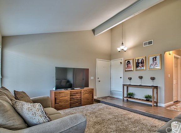 BACK ON THE MARKET!! Gorgeous turnkey end unit located in the popular Village Grove community. This beautiful one of a kind town home features 2 bedrooms, 2 bathrooms, a 200 square foot enclosed patio currently being used as a bonus room with plush carpeting, a ceiling fan and upgrades galore. The living area has lovely distressed laminate floors including the entry, step down into the cozy living room, kitchen and hallway. Newer windows, sliding doors and custom blinds in the kitchen and living room offer tons of natural light during the day. The updated kitchen includes a dining area, white shaker cabinets, beautiful quartz counter tops, recessed lighting and stainless steel appliances. The master bedroom has plush carpeting, mirrored wardrobe closet doors, a ceiling fan and recessed lighting. The second bedroom has plush carpeting, recessed lighting and a ceiling fan. The master bathroom comes complete with a custom tiled walk-in shower, quartz counter tops, white shaker cabinets and tile floors. The second bathroom has a shower tub combo, white shaker cabinets, quartz counter tops and tile floors. To top it off you have your very own private in ground pool/heated spa combo in the backyard with a removable custom safety gate. This home has it all, a new roof, newer AC unit, 2 car garage and indoor laundry. Association amenities include, tennis courts, two pools, the lake and more. Close to schools and shopping. Don't miss out, this gorgeous home can be yours!