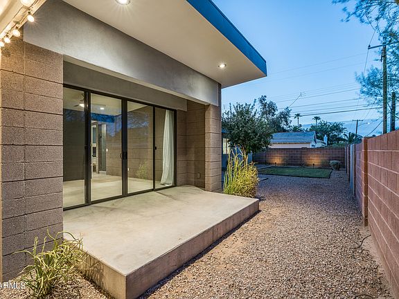 Rear yard features modern steel edged lawn area with automatic sprinklers, lemon tree, desert-adapted trees with drip system, metal-edged planting area (could also be bocce ball court) and block fencing for privacy. The 484~ square foot detached 2 car garage/ancillary structure offers ample room for parking/storage. Future possibilities of the space are endless. Whether you need a home office, gym or additional space, the garage could re-designed to serve multiple purposes. Custom steel gates add artistic charm to the outdoor spaces. Street parking is available, as well. The rear yard also offers room for expansion and/or a pool; unlimited possibilities!