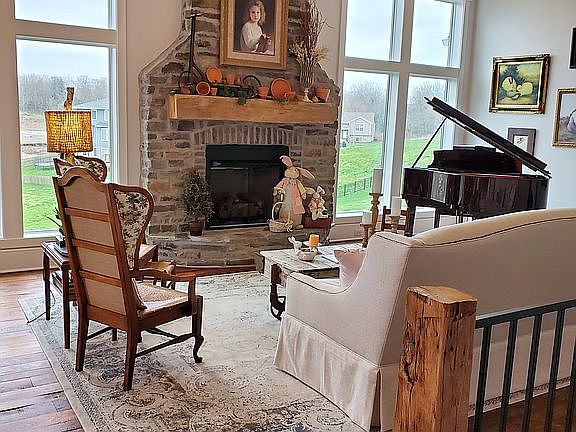 It's all in the finishes! Four bedroom, three bath family home built by owners in 2017. Three stone fireplaces, solid walnut floors and walnut range hood/counters. The entry and kitchen floors are brick. Chef's kitchen with triple sink, pot filler, 6 burner gas range, 2 ovens and under counter fridge/freezer drawers and leathered marble island counter top. Has attic fan. Screened porch, deck and patio. Custom plantation shutters frame lake view. Beautiful landscaping with fenced yard, irrigation system and raised garden beds. Apple, plum, peach and cherry trees. Over-sized 3 car garage. Storage galore including a floored attic space. Located on lake lot in cul-de-sac. Walking trail coming soon to the neighborhood! Pre-approved buyers only.