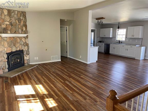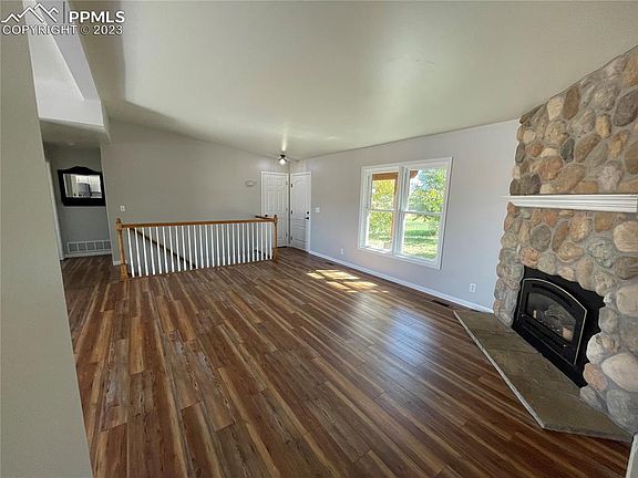 This charming and spacious walk-out ranch style home sits on a highly desirable 5 acre treed lot in Black Forest just minutes from Falcon, Monument and Colorado Springs. The property goes beyond the parameter fence. Home is also just minutes from the popular hiking, biking and horseback riding trails, Section 16 and The Pinery. Step inside this beautifully upgraded home and fall in love with the bright and open floor plan. Updates include: Updated kitchen 2023, New deck 2023, New garage door, New whole house water filter, New Champion windows in bedrooms and living room, 30 year Owens Corning dimensional shingles in 2021, Solid Core doors to include front door and garage house entry door and screen door. Additional updates include: SMARTCORE Ultra Premium 100% waterproof vinyl flooring on entire main level including stairs in 2021, Navien Tankless water heater installed in 2020, exterior lighting in 2021, exterior paint 2021, interior paint in 2023, new light fixtures, door handles, bathroom sink/shower faucets all upgraded in 2021. Samsung microwave and Whirlpool refrigerator purchased in 2019, LG gas double Convection oven/range and Bosch dishwasher in 2015. The buyer can appreciate the unfinished basement and roughed in bathroom ready to customize to fit your life style. This spacious property also includes a 12x60, 3 stall lean to with tack room, fenced in chicken coupe and a custom round pen for your outdoor living experience. Welcome Home!