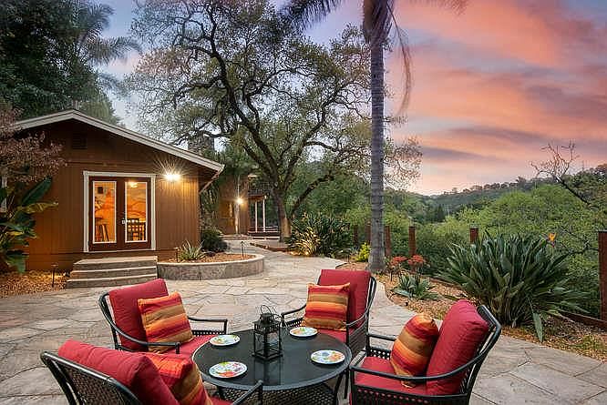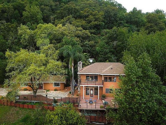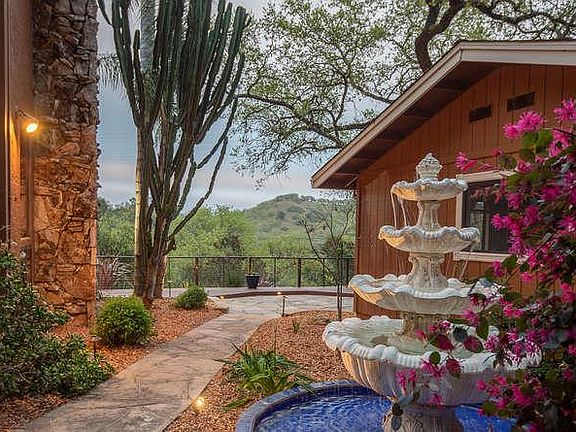 Picturesque Views! Custom 3 bedroom home & guest house - ideal in/out entertaining. Great room, fireplace w/blowers, windows open to decks. Open kitchen, island w/sink, lighted cabinets, granite counters, stainless appliances w/fridge. Dining room w/lighted cabinets, patio doors. 1/2 bath w/copper vanity. Massive master, walk-in closet, private deck, ensuite w/tumbled marble, garden tub, dbl sinks. Upstairs: 2 beds, hall bath w/walk-in shower, vessel sink, laundry. Plus: wood-look tiles, newer carpet, dbl pane windows, newer paint, recessed lighting, washer/dryer, water softener, central vac, central heat/air, 200-gal water storage & finished 2-car garage. Lighted flagstone patios & Trex decks the length of property, fireplace, fountain, cable railing maximizes views. Guest house 1000+/- included in total SF - currently used as casita & workshop w/wet bar, full bath, washer/dryer/fridge hookups - originally 2-bed guest home w/kitchenette. By Wine Trail & minutes to charming downtown.