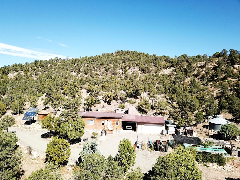 If you are truly looking to be self-sufficient, look no longer! 2 bedroom, one and a half bath, large kitchen with pantry, mudroom and cozy living room with 1,400 square feet of living space on 38 wooded acres. 6? walls R-19 insulation. Floors R-30 High ceilings, 3 skylights, Blaze Princess Wood stove and propane wall heater Large walk-in Pantry Kitchen includes: refrigerator and propane gas cook stove One full bath and one half bath Laundry Room: offers plenty of storage and sale includes front loading washer and dryer. Newly enclosed back porch and mud room. Large 24×24 Shop/Garage Roofing: metal roofing on home, car port and garage/shop. Turn-key solar equipment included in purchase.Multiple outbuildings and pens/enclosures for animals and plants.Must be seen to be apprec