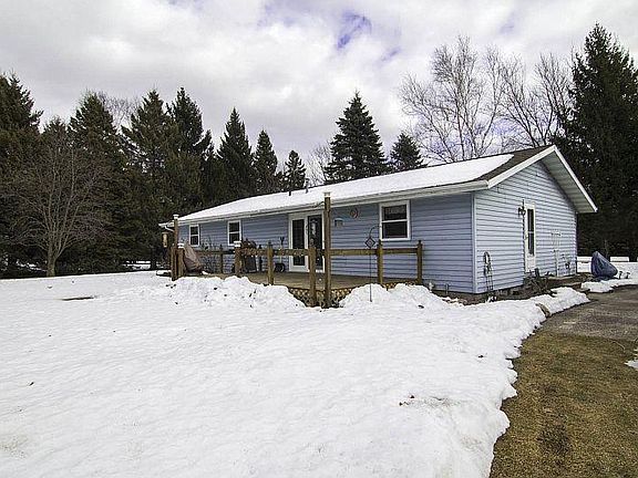 PEACE & QUIET OF COUNTRY LIVING!! 3BR/2BA Ranch home on a 1 Acre lot at the end of a cul-de-sac. Back end of lot near Jambo Creek. See the stars & enjoy the wildlife! Spacious living room. Kitchen w/dn area that opens to deck & back yard. Extra area in LV RM for formal dinning rm set. Rec room w/large bar great for entertaining. Basement also plumbed for third bath. 2 car extra deep (24 x 36) garage wired for 220 amp. Fruit trees; cherry, pear & apple. Located 6.6 miles from I-43 Maribel exit.