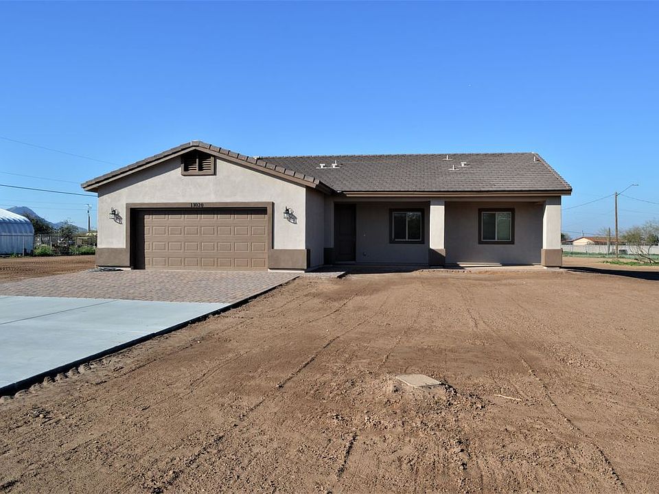 NEW BUILD ALERT! Amazing new horse property situated on well over an acre lot with an open floorplan designed for every living! Some of the upgrades include beautiful staggered 42'' kitchen cabinets with back-drop lighting, an over-sized island with tons of granite countertops, stainless steel appliances, gorgeous laminate flooring in entire home, large master & master closet, master bath has separate tiled tub & large glass shower enclosure, white blinds, modern contrasting colors and finishes, 8' paneled doors, low E dual pane Aeron filled windows, plumed for R/O soft water, oversized garage with epoxy coated floors, pavers and so much more! Don't miss out on this new home with no HOA, horse property with plenty of space inside & out in the Estrella Dells community.