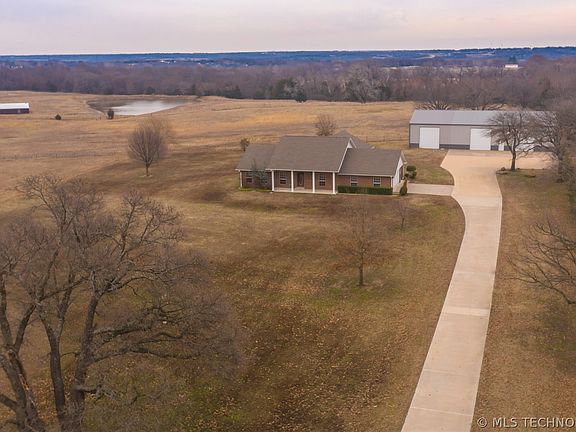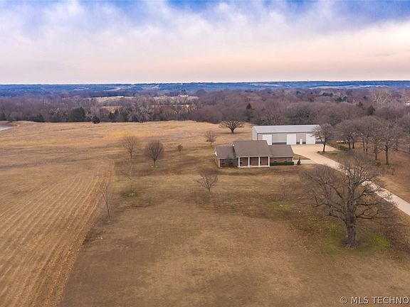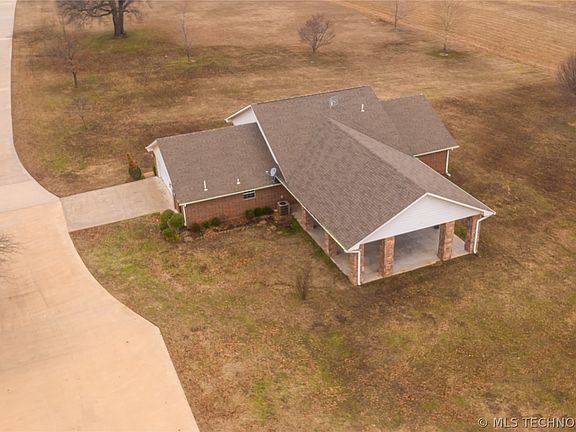 Exquisite fully bricked 3 bed 2 bath home on 9 acres with a huge shop building that is insulated and has 6 overhead doors. House is perfect for entertaining under the massive covered back porch.