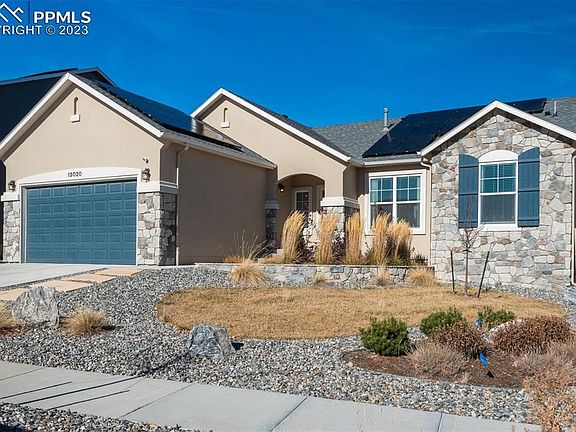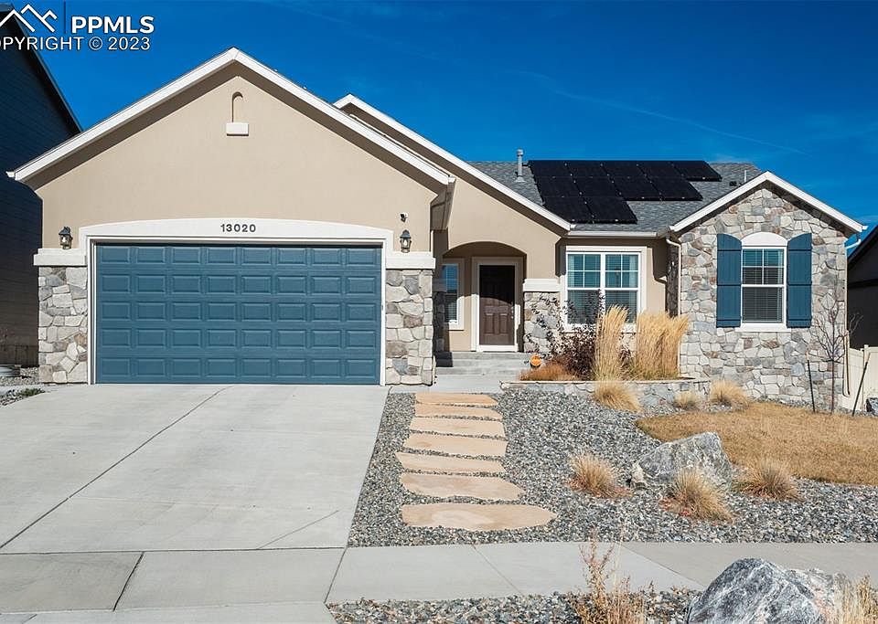 Brand new solar panels grace this Stunning Campbell Monarch Ranch home with an open floor plan, seamlessly integrating eco-friendly living. Boasting five bedrooms, three full bathrooms, and a very nice sized versatile flex room, this residence combines luxury with sustainability. Elevate your culinary experience with the Chef’s package in this Beautiful kitchen, featuring white Quartz Countertops, Stainless steel kitchen appliances, Large island with added outlets, Stylish Calcutta stone backsplash, Gas cooktop and Double ovens. This sunny southwest facing home has everything you never knew you needed. Beautiful full stone gas fireplace to ceiling with mantle framed by windows, 5 piece primary bathroom with walk in shower and seat, soaking tub and walk in closet. *Lots of strategically placed windows throughout home for natural light. * 2 Laundry Spaces - One on each level! *Cat-6 cable wiring, smart thermostat, Ceiling fans throughout, Surround sound system prewiring in both living areas with sub prewire for Dolby Digital 5.1/7.1, extended hardwood on main level throughout living areas, 2" white cordless blinds throughout, Indulge in the luxury of a wet bar with a wine rack and sink in lower level, and appreciate the efficiency of a 220 outlet in the garage for your electric vehicle, 2 car garage has a 4 foot extension upgrade, Central Vacuum system including car detail package in garage! Relax in the backyard oasis with a gas fireplace, extended concrete patio and privacy fencing. *Stucco and Stone exterior finishes. This solar-powered home is designed for modern comfort and sophisticated, sustainable living. Buyer will need to qualify and take over solar lease/loan. The solar panels will need to be assumed by the new buyer. HOA includes Meridian Ranch Recreation Center and Stonebridge Lodge. *Club House *Fitness Center *Pools *Playground