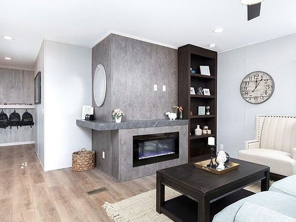 You will love this modern two bedroom home! This home features a built in fire place and open floor plan. Large kitchen with farmhouse sink and built in eat in counters adjoins to the family room. Washer and dryer with built in storage cabinets. Hurry this home will not last long!