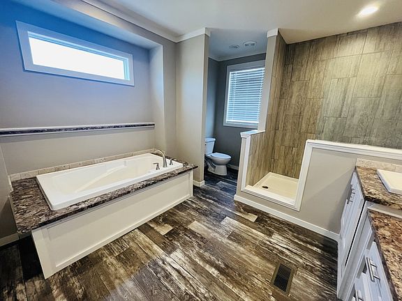 This is a beautiful 3 bedroom 2 bath home. This home has barn style doors, granite counters , his and her sinks in the main bath. Call or walk in to see this home. House pictured in photos might vary slightly from actual home