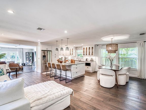 This charming 3-bedroom, 2-bath cottage-style home has been beautifully updated and is situated on a spacious corner lot, directly across from the intracoastal waterway. Surrounded by million-dollar homes, this property offers a unique blend of comfort and potential. The home features a generous yard perfect for entertaining, complete with private lush landscaping and a classic white picket fence. It's move-in ready, but if you're looking to personalize it further, there are drawings available for remodels, including the addition of a master suite, pool, and front porch. This could be a fantastic investment for you! Recent upgrades: Shingle roof installed 2021, Attic ceiling. fan replaced 2021, Water heater 2021, Sprinkler system & Zoysia grass installed 2021 Hurricane impact doors and windows installed 2020, Septic field & pipes cleaned 2024, water filtration system 2025 and an outdoor summer kitchen 2024.