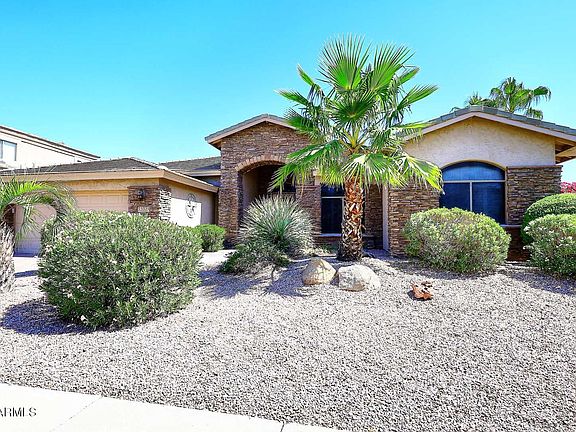 Great curb appeal showcases a paver drive and walk way with architectural stone accent facade. Spacious open floor plan with no steps, features soaring ceilings and immaculate tile flooring. Enjoy breathtaking views of Four Peaks Mountain range from ALL main living areas. Huge kitchen offers granite countertops, island, stainless appliances, built-in desk, and a walk-in pantry, opening to the family room with built in entertainment center and gas fireplace. Large primary bedroom includes a sitting area with pool access, while the luxurious master bath features an oversized jetted tub and custom walk-in tile shower. The private and tranquil backyard offers a sparkling heated pool with water feature, covered patio with non-slip deck, mature landscaping and mountain views.