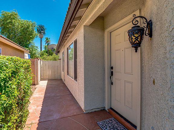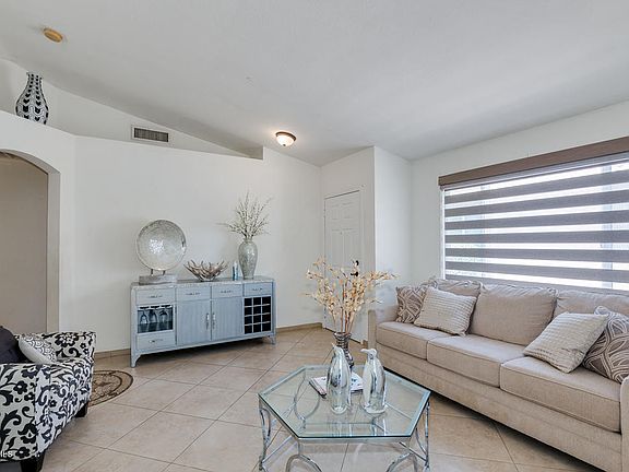 Beautiful upgraded 3 bed, 2 bath home located in Las Palmeras West. Nice open floorplan. Exterior painted 3 months ago. Upgraded kitchen cabinets, gorgeous backsplash, beautiful kitchen island, stone on island wall and dining room wall, upgraded appliances. Custom made window coverings throughout installed 2019. Custom built-in entertainment center finished with a stone wall. Master bathroom and guest bathroom are fully upgraded with walk in showers-MUST see! Ceiling fans throughout, nice master w/ large walk-in closet, seperate laundry room! Bedroom closet doors are new with all new door hardware. Nicely landscaped large lot w/auto watering system. You will not be disappointed, former spec. home with all the touches, pride of ownership.