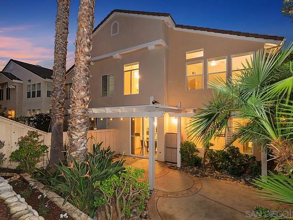 Rarely available! Stunning 3 BR/2.5 bath, 1,791 sq.ft TWIN HOME in the gated community of Canyon Ridge in the heart of Carmel Valley. Lives like a detached home with a 2-car attached garage. Steps from the community pool, spa, and greenbelt. Abundant natural light floods the open floor plan with soaring high ceilings. Gorgeous luxury vinyl flooring throughout. Cozy living room with a beautiful fireplace. Beautiful kitchen with granite counters, and a breakfast nook. Sliding doors off the kitchen provide easy indoor/outdoor living. Serene backyard oasis with lush tropical landscaping. Spacious master suite with a custom walk-in closet. Built-in custom closets in the garage with 240V outlet for electric car charger. Located just minutes from beaches, dining, and shopping centers. Minutes to freeways (I-5/SR-56), Del Mar Highlands shopping center, the Village at Pacific Highlands Ranch, and One Paseo featuring high-end restaurants, coffee shops, and boutique clothing stores. Steps from Carmel Knolls Park and minutes from the highest-rated schools in all of California. Solana Beach school district. Carmel Creek elementary, Solana Pacific elementary, Carmel Valley Middle School, Torrey Pines high school, and Canyon Crest high school. Carmel Valley offers wonderful parks, walking trails, bike trails, and just a few minutes' drive to Del Mar Beach and Torrey Pines State Preserve. This is a true find. Must See!