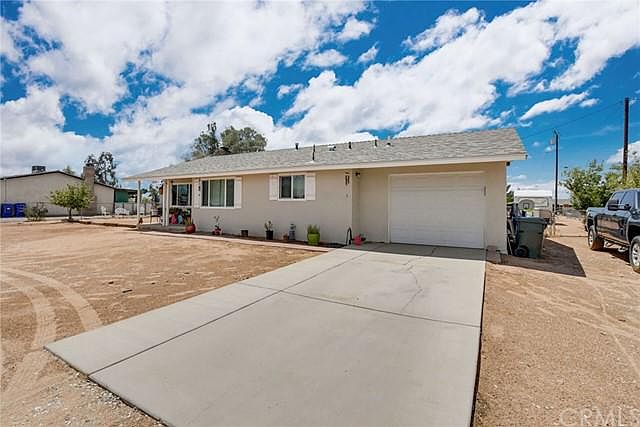 WELCOME HOME. This cozy 2 bed 1 bath sits on a half acre lot, conveniently close to shopping centers, schools, parks, highway 18 and Bear Valley. It has new flooring, fresh interior and exterior paint, a new roof, kitchen countertops, water heater, garage door, brand new windows installed, swamp cooler and much more! Upon entry there is a spacious living area with a fireplace leading to a large dining room. The two bedrooms are good size with ample closet space. The large yard is fully fenced with a covered patio in the backyard perfect for enjoying family outings and events! Must see!