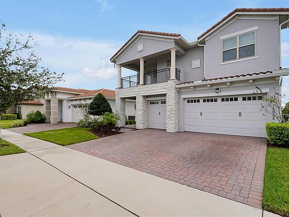 Beautiful, immaculate well-appointed home in desirable Eagle Creek, an exclusive, GOLF, guard gated community with Resort style amenities. A lovely home that offers instant curb appeal, Clay tile roof, lush landscaping, paver driveway, upper balcony's and Stone veneer pillars that add superiority to the Elevation Stepping into the front hallway of this beautiful home you can see yonder, amazing views of flowing Water and Conservation from the spacious living area. A Bright and airy home, the open floor layout is designed for both luxury and comfort. Luxury Vinyl flooring in a beautiful neutral light oak shade is laid throughout all living and bedroom areas, additionally find custom storage cabinetry and upgraded custom blinds throughout the home. The kitchen is equipped with 42” sleek cabinetry, quartz counters, stylish backsplash, walk in pantry, stainless appliances and a large center island space perfect for family and friend gatherings. There is a convenient mudroom as you come inside from the 3-car garage. And a laundry room on the first floor with washer and dryer Of the two Master Bedrooms, one is on the first floor, this Master bedroom is very spacious boasting a tray ceiling that adds to height, the Master bathroom has Double vanities, a large walk-in shower, and a spacious walk-in closet designed with custom cabinets and shelving. Upstairs, find an open loft area, three other bedrooms, the second laundry room and the second Master bedroom with its own ensuite bathroom and where you can step out onto the screened in balcony Other upgrades include Dual AC system, newer gutters and a full house water filtration system Outside find a screened in lanai to enjoy the peaceful times of day, sip morning coffee and evening cocktails with lovely water views and an unimpeded view of the conservation. Iron rail fence around the yard, fruit trees and there is room for a pool The community has many amenities, two sparkling community pools, tot splash area, a fitness center, club house with meeting rooms, tennis courts, pickleball, a basketball court and many playgrounds, gazebos and parks all around the community. A GOLF course community with sidewalks for leisurely walks or jogging The area surrounding Eagle Creek offers sought after top graded Lake Nona schools, easy access to SR 417, the Medical City, Nemours, VA hospital and the popular Lake Nona Town Center, easy driving to Orlando International Airport, Disney Attractions, Universal Studios, and SeaWorld. This is truly Florida Living at its best!