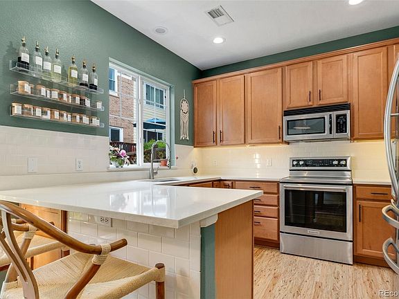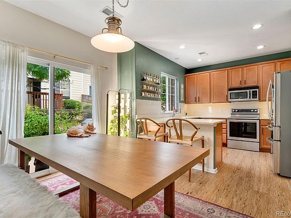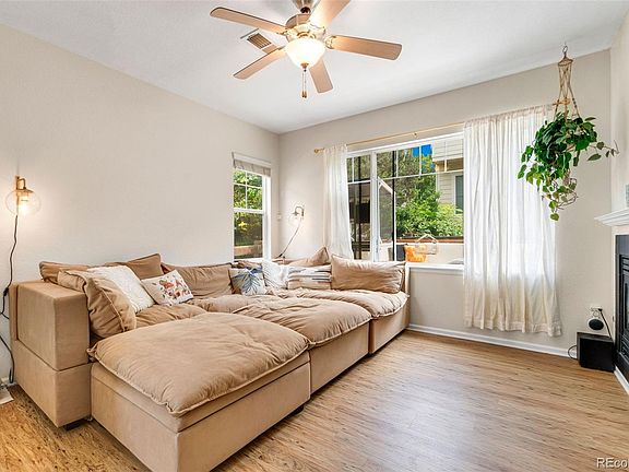 Welcome to this stunning 2-bedroom, 3-bathroom condo that feels more like a townhome. Featuring a private entrance, a private backyard, and only one attached neighbor, this home offers both privacy and community amenities. The beautifully laid-out 2-story home boasts elegant floors and cabinets in the kitchen, abundant natural light, and ample storage space. Upstairs, you'll find two bedrooms and two bathrooms, including a master suite with his-and-hers closets, a seating area, and a double-sided gas fireplace. The community provides a seasonal pool and takes care of all exterior maintenance, trash, water, and sewer. Enjoy the convenience of your own attached garage with additional parking. Please reach out to Stacia Shane, Listing Agent for your private tour. 720-434-7375
