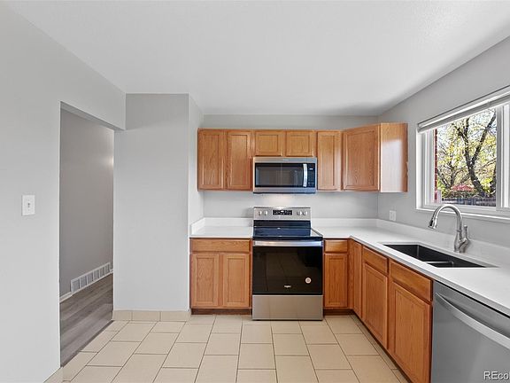 Beautiful and recently updated 5 bedroom (4 conforming), 2 bath home with full-finished basement. Recent updates included kitchen and bathrooms. Brand new updates include 4-piece Whirlpool stainless steel appliance package, quartz countertops in kitchen, all new light fixtures throughout the house, new bathroom vanities, mirrors and toilets, new luxury plank flooring in living room and hall, new carpet in bedrooms and basement, and new interior paint throughout. Relax and enjoy the full-finished basement with spacious family room, two bedrooms (one conforming), bathroom, and laundry room with plenty of storage and an additional refrigerator. You’ll have no maintenance worries with a brand-new furnace, a water heater that was replaced in 2019, an electrical service/panel that was updated in 2013, and a 2014 hail resistant roof. Exterior amenities include a brick paver patio, covered front porch, and a large, fenced yard with plenty of room to add a detached garage. Close to Anschutz Medical Campus, DIA, The Shops at Northfield/Stapleton, Rocky Mountain Arsenal Wildlife Refuge, and Dick's Sporting Goods Park. Only 7 minutes to the Peoria Light Rail Station.