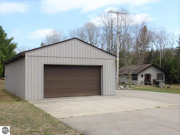 Enjoy the peace and privacy in this cozy home located on 6 acres in Benzie County with private frontage on Carter Creek. The large 20x40 detached garage with private workshop is just the place to store all your up-north toys. The home is a Handyman Special and needs your finishing touches. If you are looking for a project, this home has the potential to be a masterpiece. The main floor consists of a kitchen with a handcrafted island, great room featuring custom vaulted ceilings, large private deck overlooking the back yard, two bedrooms and one bath. The living room and both bedrooms need floor covering. There is also some drywall that needs finishing. There is an opening to the walk-out lower level with a staircase, but currently is covered. The lower level is not livable in its current condition and will require significant renovation prior to occupancy. NOTE: Property will require cash or renovation financing. Sold As-Is