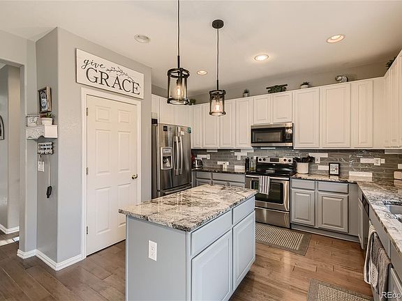 This striking and beautifully remodeled 3 bedroom, 4 bath multi-level home in Thornton provides spacious living and thoughtful accents throughout. With over 2,800 square feet, which combines carpeting and laminate hardwood flooring, and spectacular vaulted ceilings, youll adore the separate dining room as well as the private front sitting room. An open floor plan seamlessly connects the renovated kitchen and step-down family room, where youll appreciate the accent wall and cozy surroundings. The recently remodeled kitchen includes granite counter tops, stainless steel appliances, double sink, artistic lighting over the prep island and loads of cabinet storage. Theres a lovely updated powder room on the main floor with an attractive vessel sink and granite counter on the vanity. Enjoy a large backyard thats perfect for entertaining. There is an oversized concrete patio offering plenty of space for multiple seating configurations and, of course, your grill. In addition to housing the 3 bedrooms, the upstairs also boasts a loft where you can set up an office or flex area. The primary bedroom boasts an en suite bathroom with separate shower and soaking tub along with a large walk-in closet. Escape to the finished basement where there is a wet bar and perfect space for game tables or a media center for watching your favorite team. Youll find new paint throughout the home, and a huge 3 car attached garage and large driveway provides plenty of off-street parking. The home is close to Starbucks, Walmart and several parks including Riverdale Park and Trail Winds Park and Open Space. Great access to 128th Avenue as well as Quebec St. and E-470.