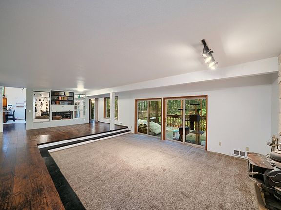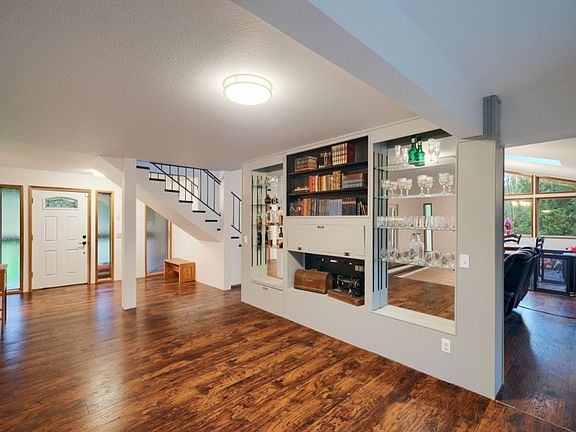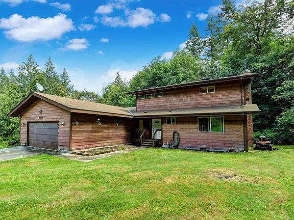 A 3 bedroom home on 6.9 acres of private, & secluded space to view deer & other wildlife. This home has 18ft vaulted ceilings w/ lots of natural light. Huge kitchen w/ eating space, ss appliances & pantry. LED lights throughout. Formal sunken living room. Master En Suite w/ 2 closets, fireplace & deck off master. Finished daylight basement w/ huge office/bonus room. Enclosed pet area off the rec/basement. Wrap around deck w/ covered space for small animals.