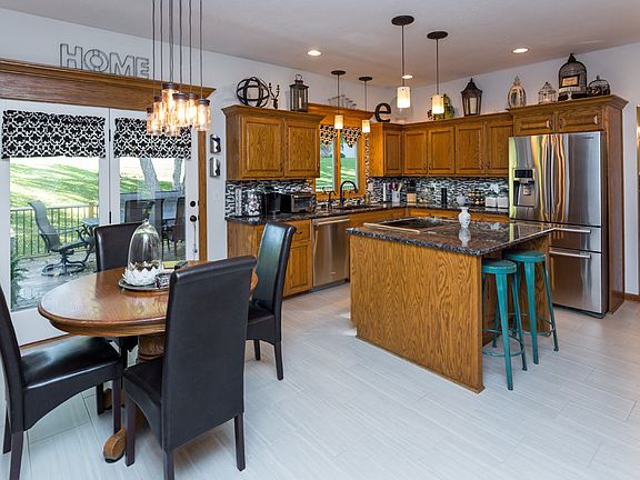 Sharp Updated Four Bedroom Clive Two Story; 3200+ Finished Square Feet on Three Levels; Open Entry with Formal Living and Dining Room; Newly Updated Eat-In Kitchen with Custom Cabinets, Granite, Stainless Appliances; Soft Close Doors; First Floor Family Room with Direct Vent Fireplace and Built-Ins; Kitchen Sliders Open to Great Outdoor Entertaining Space; Large Deck and Built-In Hot Tub; Check out the Large 4 Bedrooms on the Upper Level and the Surprise Extra Storage Room; Custom Perfectly Complete Lower Level has Family Room, Wet Bar, Theater Room wired for Surround Sound, Projector and TV plus Ample Storage. Three Car Garage has Gas Heater, Wired with 220, Extra Room off Garage for that Woodworker's Pleasure; 9 Zone Irrigation System. Updates: Roof - 2010, Carpet - 2018, Furnace - 2008, AC - 2009, Cement Board Siding - 2011, Anderson Windows - 2011, Water Heater - 2014, Reverse Osmosis - 2018