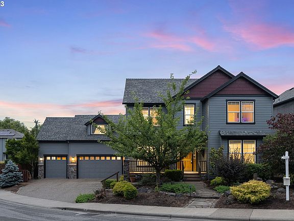 Welcome to your dream home! This stunning craftsman-style 2 story house features 5 bedrooms, bonus room, office, and 3.5 bathrooms. The secondary suite provides flexibility for guests or extended family. The south-facing orientation floods the space with natural light. Step inside to discover a large kitchen with an island, adorned with stainless steel appliances. With wood floors and vaulted ceilings, the home exudes elegance. The paved patio with a built-in fire pit is ideal for outdoor entertainment. Enjoy the expansive fully fenced yard, professionally landscaped front yard, and the charm of a great neighborhood with excellent schools. This exceptional property has everything you desire and more!