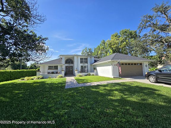 This split plan. home and has views of the pool from your Living Room, Den, Primary Bedroom and Kitchen nook . The Guest and Primary Bathrooms have double sink vanities that have been updated and boast granite tops. The Home connects you to a Pool Room/Summer Kitchen that has a kitchen that has a gas line for your outdoor BBQ (cabinets with granite counter tops, farm sink, refrigerator & Bathroom (sink & toilet) as well as room for a tanning bed (which is included in the sale of the home) this way, you and guests have a separate kitchen area for eating, drinking and a changing area while spending time at the pool. You also have a continuous gas line for your grill. This home has an indoor Laundry room, pantries and lots of closet and storage space throughout the home. The pool is huge (14 x 28) and has a spa connected to it. If you're not familiar with the East Linden Estates community, you really should consider looking at this home and the beautiful neighborhood it's situated in. This home is in a great location and is close to shopping, restaurants, and medical facilities. You are close to the SunCoast Parkway your gateway to Tampa, Clearwater, or St. Petersburg leading you to, Airports, Sporting Venues, Cultural Arts, and world-famous Beaches. There is also our Local Beach where you can watch the Sunset and fish at the piers. The Nature Coast is one of the best places to live in Florida!