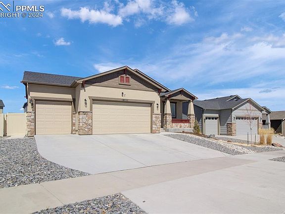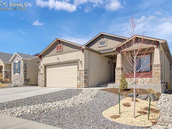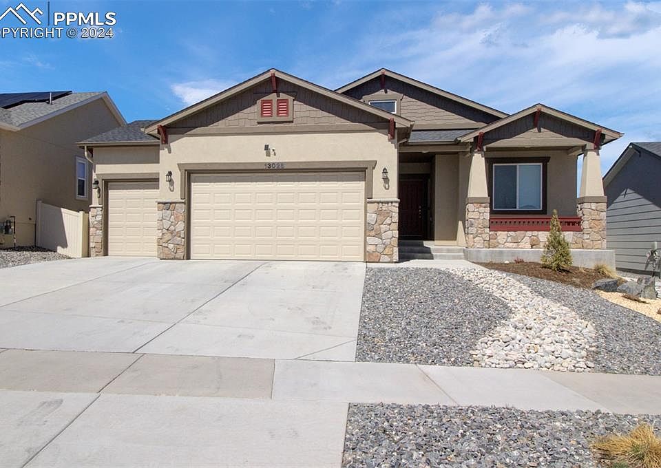 Magnificent 4 Bedroom 3 Bathroom 3 Car Garage Main Level Rancher in Meridian Ranch! As you enter into your new home you will pass through a cozy exterior covered porch area and walk into a spacious open floor concept on the main level that has a see through fire place as the rooms center piece. The Kitchen is an upgraded chef's Kitchen from Campbell Homes and features marvelous granite stone countertops, island, and plenty of cabinetry. There is a dining area before you walk out to your rear porch which overlooks your back yard. The 13 x 16 sq. foot Master Bedroom has wonderful closet space and connects to your on suite Master Bathroom. There is one additional bedroom on the main level, along with two additional bedrooms in the basement. The basement also boasts a gigantic rec area / second family room which can be utilized for whatever you want the space to become. Meridian Ranch has a 42,000 sq. foot rec center where you can choose from a full array of activities, classes, and fitness opportunities. The rec center also has a gymnasium, and indoor pool with a water slide and interactive play features, a lazy river, and lap lanes. Close to schools, parks, trails, shopping, and all Military bases. This property also has the potential for a 2.5% VA Assumable loan, inquire with listing agent for further details. Truly a Must See!