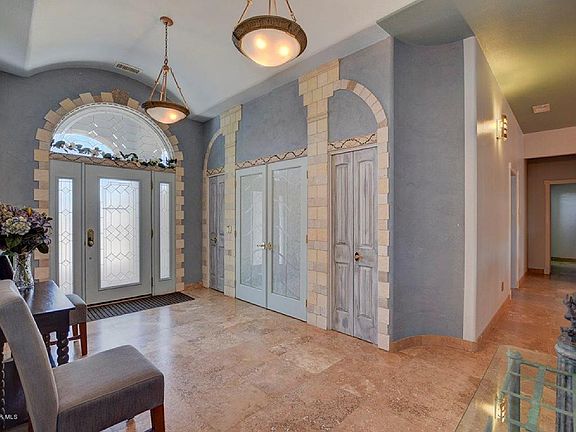 Tuscany Themed High End fully CUSTOM home with over 3/4 acre lot siding up to State trust land. Travertine stone floors. Amazing chefs kitchen with Granite counter tops, picture sandstone, 6x9 island, 49 Cubic Ft Side by Side Refrigerator, 6 Burner Thermador Gas Range Top, Commercial Range Hood, Convection Wall Oven, Tri-Vection Microwave, all open to an opulent great room. 3 oversized bedrooms + 2 additional dens or office spaces, one off the master and one off the garage. Attached 2 bay garage is 3G big with over 600+sq.ft. The detached 3G with 2G bay is 24x32 great for shop or cars. So much to mention so little space, here are just a few more features: Coffered Ceiling, Butler's Pantry, Massive Laundry Room, Belgard Pavers, Travertine Floors/Baseboards, Gas Fireplace w/Blower.