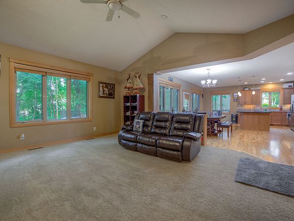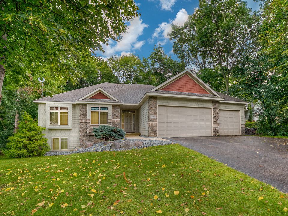 Custom built Rambler located in a high demand Eagle Creek neighborhood. Fabulous main floor layout with vaulted ceilings and spacious living spaces. Beautiful kitchen with maple cabinetry, Corian counters, modern tile backsplash and Stainless Steel appliances. The kitchen opens up to a fabulous dining space and flows nicely into the great room. This home features 5 bedrooms and 3 bathrooms. Three bedrooms on the main level with a spacious master featuring a private bathroom and walk in closet. Convenient main level laundry space. The lower level is an Entertainers Dream! Fabulous wet bar + expansive family room with built-ins and a stone surround fireplace. Two spacious bedrooms and a bathroom finish off the lower level. Cozy up to the fireplaces or walk out to relax on the wrap around deck and enjoy the great wooded setting! Fabulous location close to parks, school, shopping and much more!