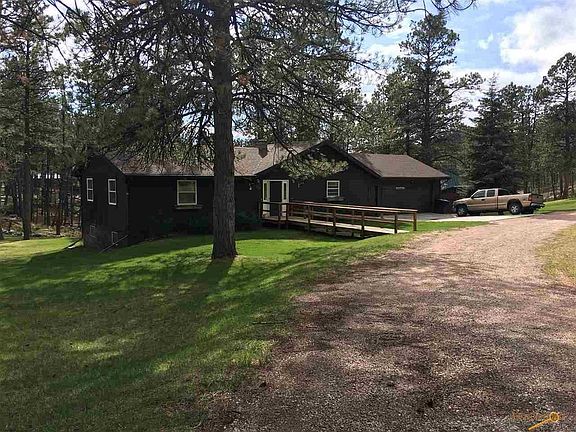 Looking for peaceful living? That is exactly what you will find in this home! This 4 bedroom, 2 bathroom home is located just outside of Rapid City. Situated on one acre in the pine trees! The home offers beautiful vaulted ceilings, the kitchen, dining room and living room are all open to each other, great for entertaining! There is a large deck off the dining room and a lovely stone fireplace in the living room. On the main level you will find two bedrooms, including the master and one bath. On the lower level you will find two bedrooms and one bath, the very large family room, that features another beautiful stone fireplace. There is also a craft room and a small office on the lower level. The Family room walks out onto a patio and on the other side of the patio there is a large storage/shop that is heated (would make a great workshop) This home has a great floor plan and beautiful lines!
