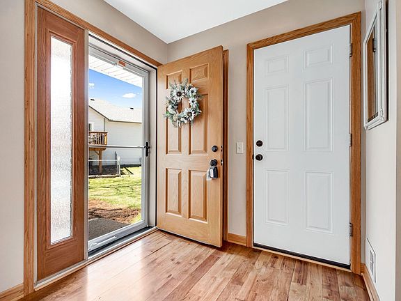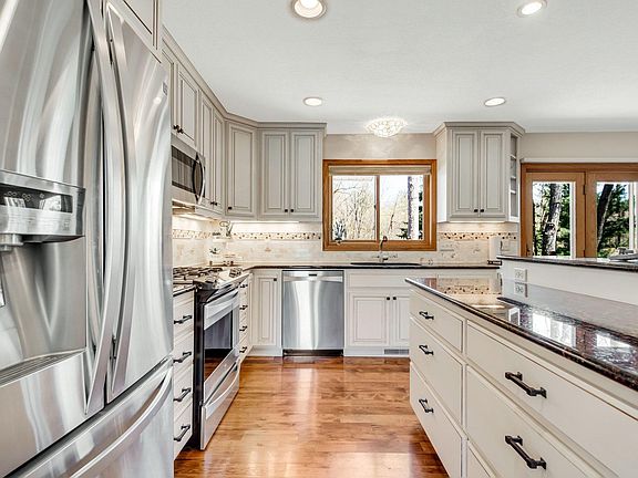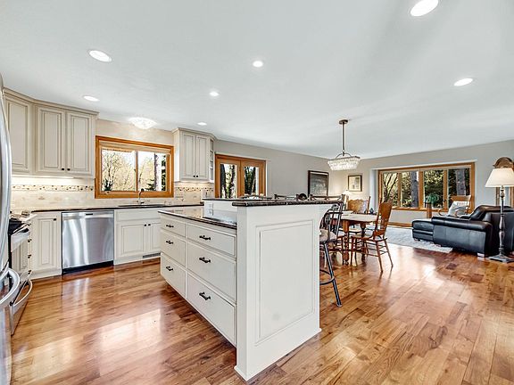 Beautifully maintained walk-out Rambler at the end of a quiet cul-de-sac situated on a little over a 1/3 acre lot overlooking a pond with plenty of wildlife. Close to parks, shopping and restaurants. Original owners who have meticulously maintained the home. Recently remodeled kitchen and bathroom. Bathroom has a heater you can turn on to make it warm and cozy. The kitchen features a beautiful backsplash and pottery barn chandeliers. Newer furnace and gas water heater, new carpet, freshly painted and gas fireplace in LL. The exterior includes maintenance free siding, leaf guard gutters, cement driveway and beautiful cedar deck. The home also has hickory wood flooring, 6 panel oak hardwood doors and a Kinetico water softener. LL bedroom can be made into a legal bedrm by adding egress window. Also LL has a rough-in for full bath.