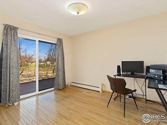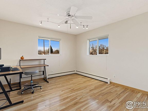 1970 Brick ranch style home on .43 acre. Main level offers 2 Bedrooms, sun filled living room & dining area with beautiful hickory floors. Large Kitchen has eating bar & coffee bar, plus eating area, ample cabinets & counters. Laundry room and updated bath on Main level. Finished basement has non-conforming 3rd bedroom, extensive Rec Room with wood burning FP, 2nd updated bath. 2 car garage, hydronic heating system with very low gas bills, newer windows & blinds, roof 2 years old, fully fenced. Sliding door to freshly stained Deck in 2nd bedroom, easy-care floors. The 3rd bedroom located in the basement has a window, which met code in 1970, but is undersized by today's code requirements for a bedroom. The Heating boiler is approx 4 years old, and provides even heating throughout the house. Kitchen appliances, clothes washer & dryer, and shelves in garage are included. Newer water heater. You will be glad to have a Sprinkler system, Storage shed, and plenty of RV, Boat, and off-street parking. Lots of fruit trees, Wisteria, and grapevines. You can even relax on the deck and enjoy watching the horses across the fence. No HOA, No Metro District, No popcorn ceilings! Great location near shopping, restaurants, schools, parks, etc. City of Loveland is planning and working on the Aspen Knolls Detention Pond and Park to be located right across the street, South of subject property.