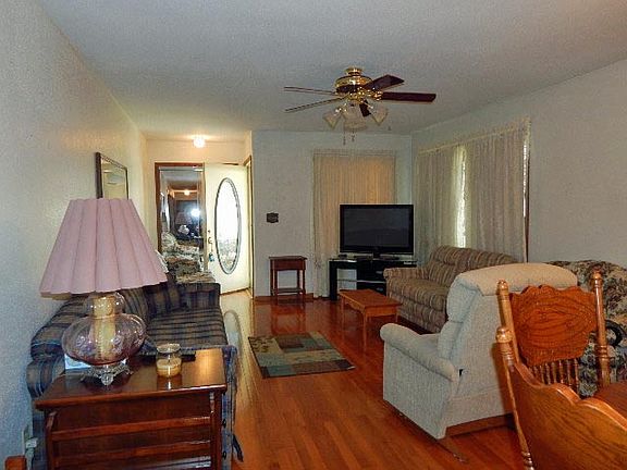 Warm and Friendly...this convenient one story home has everything you need on one level. Large bath/laundry combo, living room/dining with newer wood floors; nice kitchen with an abundance of oak cabinets, newer windows and doors, basement has family area, a second kitchen for entertaining. Insulated shed with shop area.