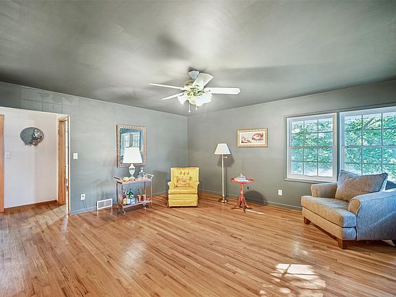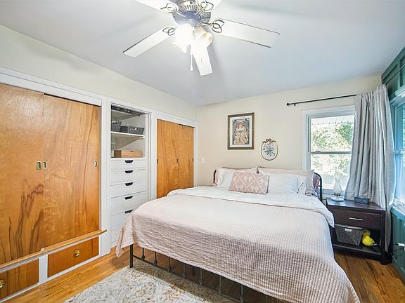 Inside, the open-concept layout offers a cozy fireplace, spacious living room, ¾ bath, and plenty of storage. The main level boasts hardwood floors, an updated full bathroom, an additional living space, and three generously sized bedrooms with built-ins. Major updates include new mechanicals installed in March 2023 and a radon mitigation system for peace of mind.