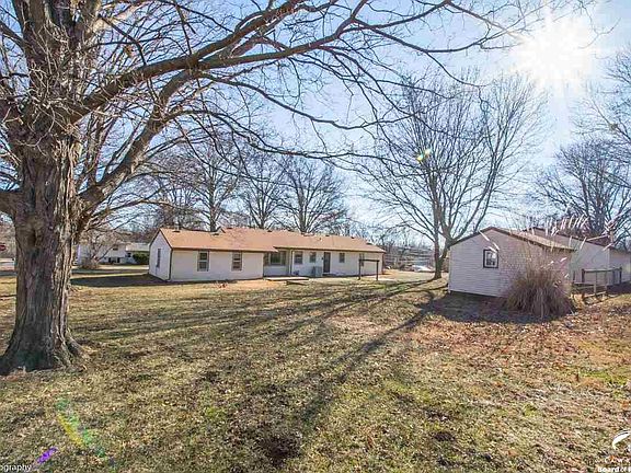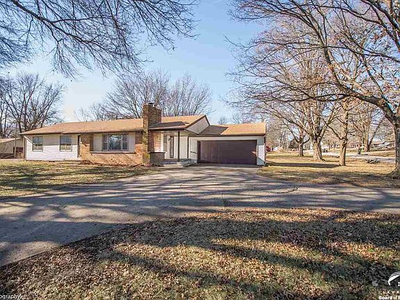 New Roof on home, shop and shed on this mid century ranch home with original hardwood floors, arched doorways and lots of character. 3 bedrooms, 1 bath, attached 2 car garage plus a detached 2 car overhead garage door 24 X 40 garage/shop, vinyl siding, updated bathroom, corner wood burning fireplace in living room along with additional wood burning fireplace in the full unfinished basement. Large yard (140 X 140) and shop has two car overhead doors. Easy to show!