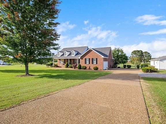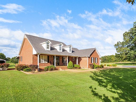 Beautiful Farmhouse style Brick home on 2.67 level acres. Hardwood floors, tiled bathrooms, with a huge finished basement with multiple potential uses. Sun room in back, covered porch front and back. Spacious well equipped eat-in kitchen with solid counters. 5 attached/detached garage spaces including RV or Boat storage and one basement level garage, Huge workshop. 4 Mi to I-40, Hwy 100. 9.5 mi to Kroger. An extremely rare find.