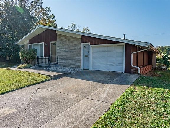 Modern 1960's one-owner 3 bedroom - 2 1/2 bath ranch-style home with its asymmetrical design, has great curb appeal and inspirations! Located just 3 miles from I-265 Charlestown Road exit off Silver Street and just minutes to downtown. Bedford stone and brick exterior, vaulted ceilings, partially finished basement with spacious new bath with tile shower, partial window replacements, and a private separate 14' x 18' den in the back of the garage with a vaulted ceiling, wood stove, and window air conditioner - perfect if you crave your own space - on a lot offering lots of privacy in the back.