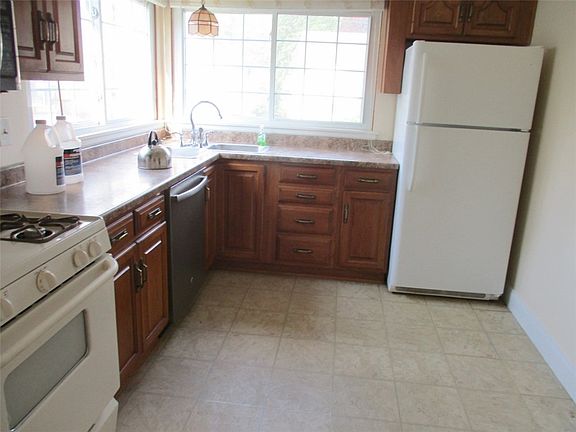 Lovely 2 BR Solid Brick Ranch Home on a Level Lot. Toasty Warm Fireplace in Livingroom. Cozy Dining Room. Updated Kitchen with Nice Wood Cabinets, Pantry Closet, Stainless Steel Double Bowl Corner Sink, New Countertops, Vinyl Tile Flooring and Corner Windows Allowing Plenty of Natural Sunlight and Giving You the Perfect Outdoor View. Gas Stove, Microwave, Dishwasher and Refrigerator Included. Remodeled Bath with Newer Fixtures, Vanity, Tub Surround, Shower and Vinyl Tile Flooring. Partial Bath in Lower Level. Hardwood Flooring Under Wall to Wall Carpet. Nice Sized Rooms Throughout. Cozy Central Air. Full Basement with Solid Steel Beam Construction. Washer and Dryer Are Included. Replaced Windows. Covered Front Porch. Outdoor Shed. Very Well Maintained.