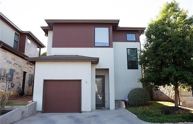 Private Cul-De-Sac home in Zilker loaded with features. Open kitchen with stainless Bosch appliances and ample storage. Bright living/dining area w/ high ceilings opens to covered patio. Rainwater collection supplies sprinkler. Spray foam insulation and tankless water heater. Pre-wired for solar and central vacuum. West-facing master suite w/ soaking tub, walk-in shower, double vanity and walk-in closet. Rare - 2 private off-street parking spaces. Easy walk to Barton Spring and coveted Zilker Elementary.