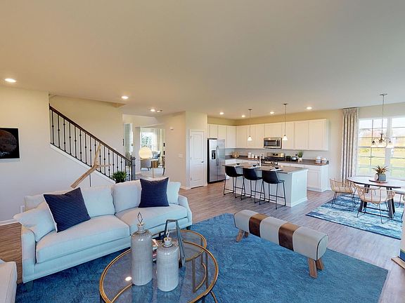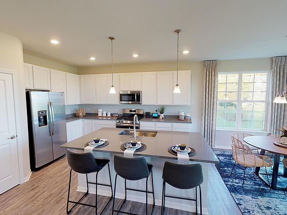 SOLD AT PRINT Winner when it comes to curb appeal and flow; but better with brick front. Soaring two-story entry with 9FT ceilings throughout the rest of the main level. Expansive, open & exquisite kitchen with wood flooring, all stainless steel GE Profile appliances, oversized center island, white quartz counters, 42" upgraded White cabinetry with soft close, single bowl sink, tile backsplash and pantry. Large family room, so you feel connected to everything. Double doors to the owner suite has 2 walk-in closets, a private bath with a deluxe tiled walk-in shower, stunning raised height, quartz, double bowl vanity! 3 large guest bedrooms, full bath & full basement with full bath rough-in! All Minooka schools! The finest innovation at the established Lakewood Prairie Community is located just under 6 mi. from downtown Plainfield, restaurants & shopping, RT 59 & I55. Every room is connected w/10X faster Wi-Fi internet connection (CAT 6A)! Interior Photos of similar RALIEGH , Exterior Photo may be a different elevation. Homesite 382.