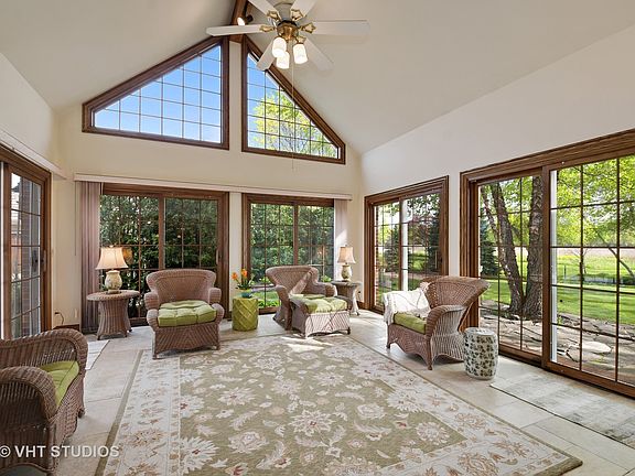 Entertaining is easy in this Orren Pickell custom all built brick home in Canterbury. Fantastic floor plan and gorgeous view of dedicated Open Lands. The Large Solarium brings the outside in for year round enjoyment. Family Room with vaulted beamed ceiling and gas log fireplace opens to the spacious Kitchen with loads of cabinets, vast counter space, center island, new stainless appliances and eating area. 1st floor office/bedroom and full bath. Master suite with his/hers walk-in closet. Newly remodeled Master Bath with Victoria & Albert volcanic limestone bath, Brizo faucets, marble counters, king size shower, double vanity and separate water closet. Large secondary bedrooms with ample closet space. Partially finished lower level with Wet Bar. New shake roof in 2017. Freshly painted woodwork. New stainless appliances! Fish in the pond, enjoy the trails and nature all without getting in your car. Close to downtown Libertyville, shopping, schools, parks and transportation.