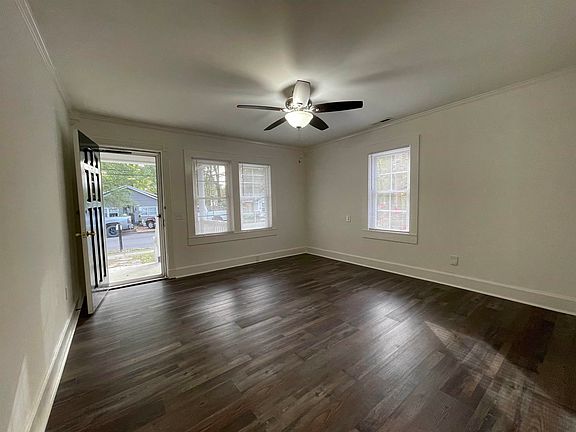 This move in ready adorable cottage is conveniently located in downtown Cullman. Perfect starter home or investment property. Split bedroom floor plan with primary bedroom having it's own attached full bath with tile shower. Second bedroom centrally located to the second full bathroom with tub shower combo. Home has 2 living areas perfect for home office, children's playroom or whatever your needs may be! Laundry room located in hallway. Open kitchen with stainless appliances including refrigerator, dishwasher and electric range. Roof was replaced in 2023. HVAC is 2012. Electric water heater. Vinyl windows. Plumbing has been updated to pex throughout home. Backyard is privacy fenced with plenty of room for your children and pets to play. There is a large shed that has power that could be used as a workshop/additional storage space. Wooden deck off back of home for entertaining and relaxing. Low maintenance LVP and ceramic tile floors throughout home, and vinyl siding exterior.