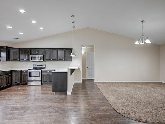 Convenient location, Move-in Ready, 1556sf, 3bdrm, 2 bath home with 2 car garage and privacy fenced back yard. Features Open floor plan, split bedrooms, Knotty Pine Twin Oaks Cabinets, Quartz Counter tops, extra large front patio with fire pit, mature trees. Primary suite has large walk-in closet, and double headed shower, the perfect retreat at day's end. An all around, nice home, in a nice Neosho neighborhood. Will qualify for government backed loan programs. You should call your agent today!