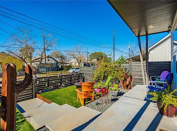 An entertainers paradise less than 2 miles to downtown Austin.Exceptional modern retreat features a bright/open dine/kitchen/live w/floor to ceiling glass doors.Center kitchen island & high end appliances.All beds up w/desk space, w/d closet & balcony w/city view.Large master:dual vanities, soaking tub, walk in shower.$80K+ in upgrades.Income producing garage guest suite w/sep entrance can pay for taxes.Alley access garage w/custom storage.Fenced yards.Furnishings negotiable.See attached for more info.