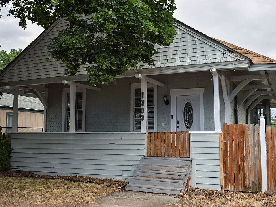 MLS# 262808 Adorable historic house that's perfect for first time buyers or investors. Built in 1890 this home offers architectural details you will love! With a covered front porch, large mature shade tree and gingerbread siding a little bit of work would make this the cutest home on the street. Inside you will appreciate the extra high ceilings with exposed beams and original wood floor, making the large living room and instant focal point. A spacious kitchen and dinning room along with two bedrooms ensures this not quite 1000 sqft house feels anything but small. Additionally you will love the separate laundry room which leads to the back yard. The back yard is fully fenced, includes alley access and is just waiting for your imagination to make it into a back yard sanctuary. This home needs just a little bit of love to be transformed into someone's dream starter home.