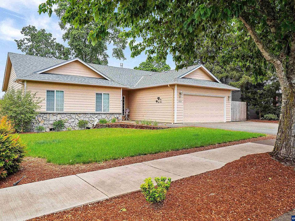 Beautiful, well cared for, single level ranch style home in Mountain High Addition. Built in 1999, home includes 3 bdrms, 2 baths w/1,546 sq. ft. of living space, gas fplc in living room, granite countertops in kitchen, mature landscaping, and fully fenced yard. Newer kitchen appliances, roof was replaced in September 2023, and deck to backyard off dining area has new railings. Located in quiet neighborhood with seasonal views toward Mt. Angel. Seller is open to allowance for interior flooring and paint.