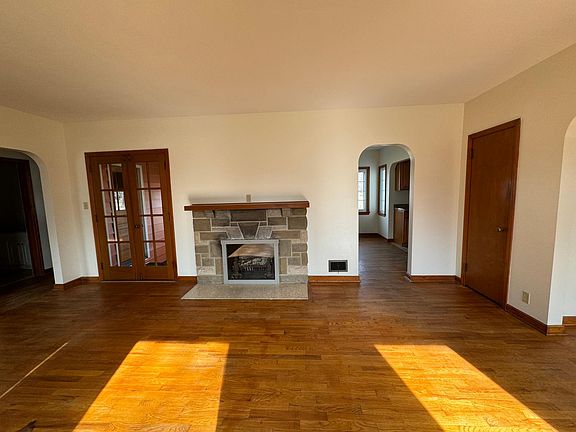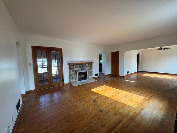 Built-in hall cabinetsCorner lotOriginal hardwood floorsFull unfinished basementSingle storyArched doorwaysStone fireplace