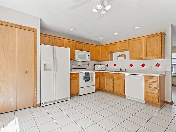 Very nice 3 BR, 2.5 BA, w/ additional downstairs living room. No association Fee's, Condo designation that functions as Zero lot. Excellent location close to HyVee and Interstate. Enjoy bright rooms, large kitchen w/area for dining room table, separate from living room. 1/2 bath on main, Large pantry, Oak cabinets, 2 walk-in closets in upstairs bedrooms. Fenced backyard w/deck. Attached one car garage, extra parking pad for a total of 3 vehicles, plus additional street parking across from home. Newer A/C, 2019.